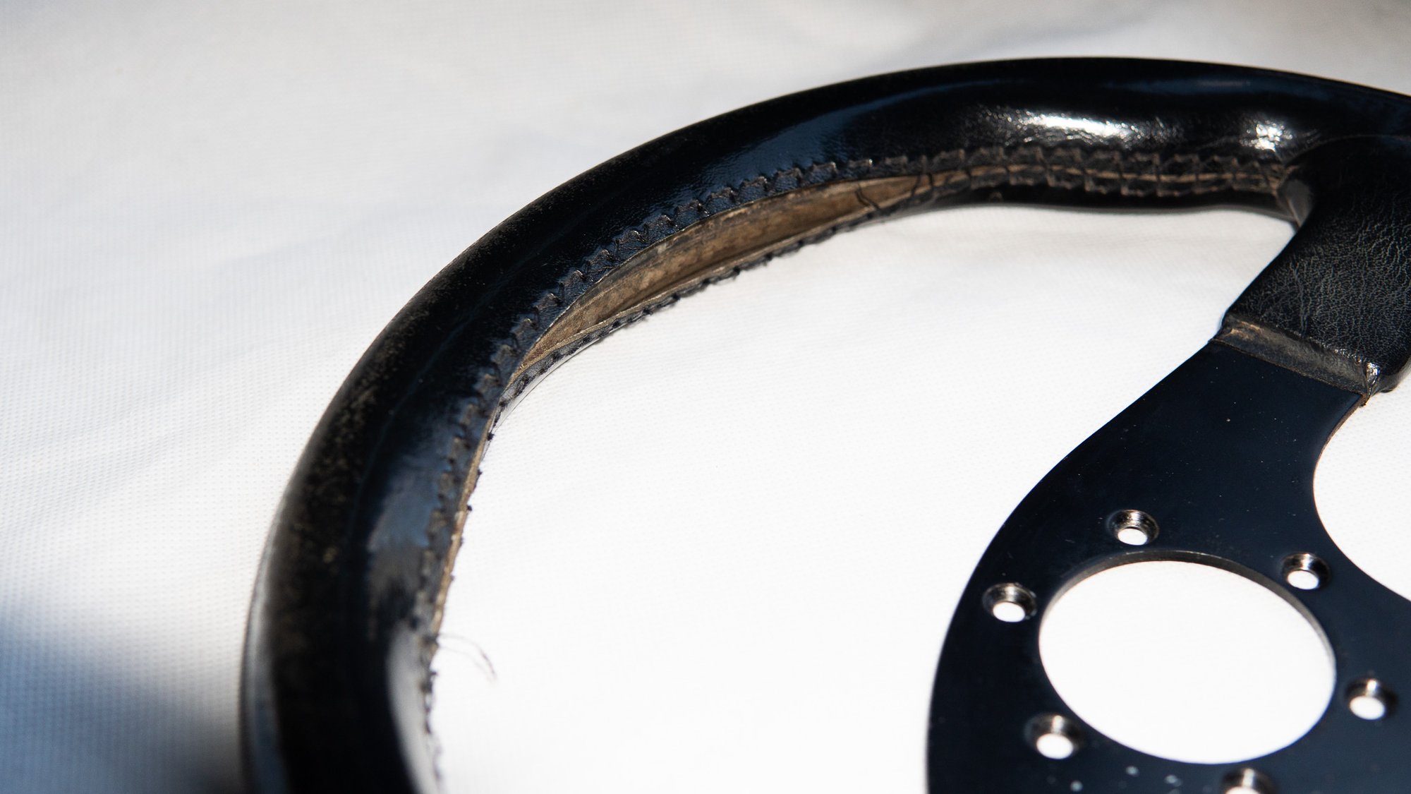 Due to a fairly serious issue with the seam at the top of the steering wheel, the price has been reduced accordingly. The remaining parts of the steering wheel are in excellent condition.