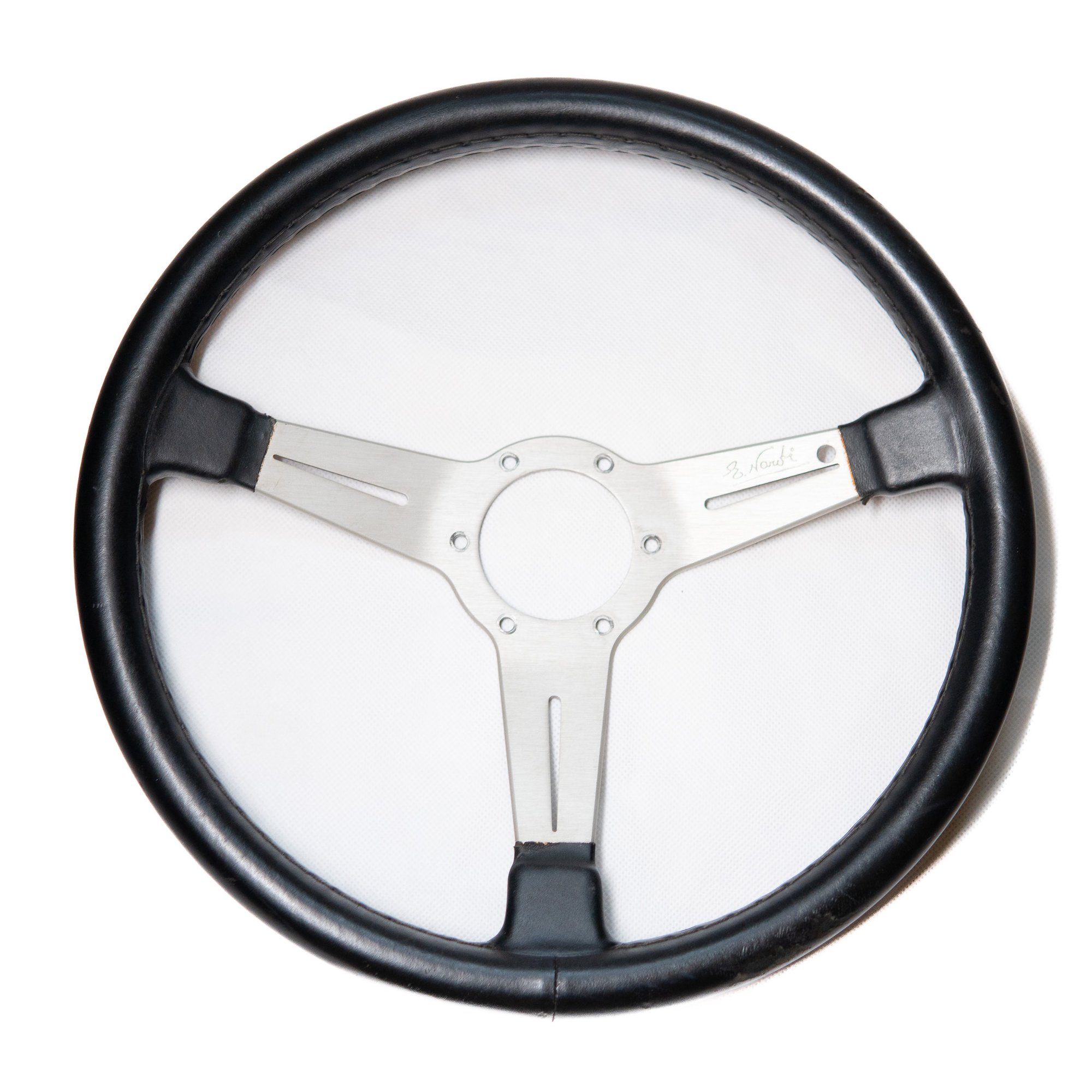 There’s a small hole on the steering wheel that was probably used for some function in the sports car. However, it doesn’t affect the structure of the steering wheel — maybe you’ll find a use for it! Anyway we'll sell it a bit cheaper than usual one just to be fair with you guys!